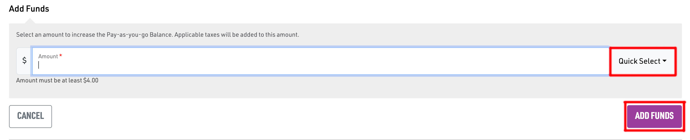 Note: Each Mobile subscription has its own Pay-As-You-Go balance. If you have more than one Mobile subscription on your account, you will have a Pay-As-You-Go balance for each.