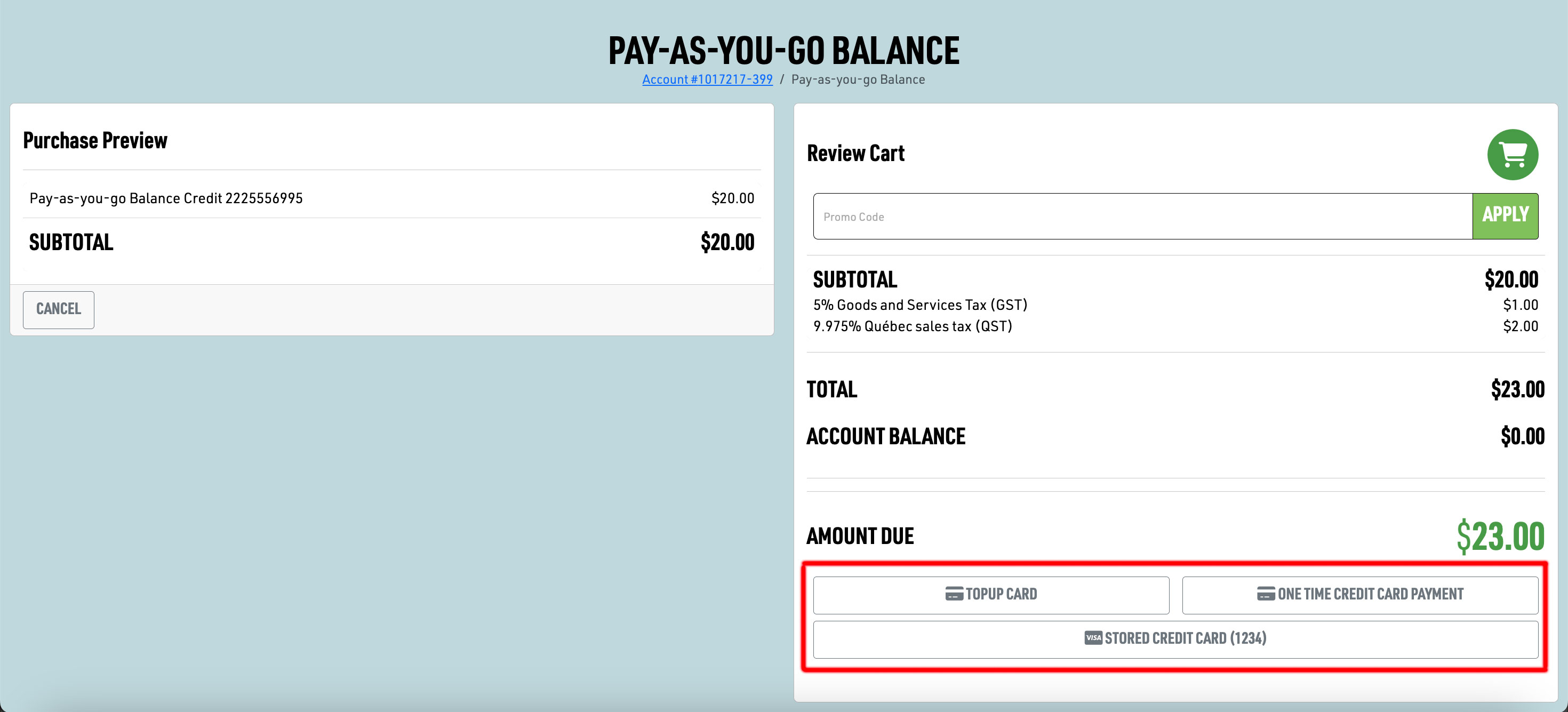 Note: The Pay-as-you-go balance cannot be used to purchase or renew monthly Mobile or Internet Service Plans. All Service Plans are paid from your Account balance. The Pay-As-You-Go balance is separate from your Account balance.